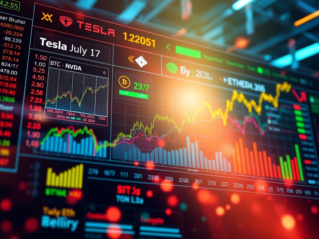 Hey, Times of Investing readers! It’s time for your daily dose of market action. On July 17, 2025, we’re diving into the latest moves for Tesla (TSLA), NVIDIA (NVDA), Palantir (PLTR), Bitcoin (BTC), and Ethereum (ETH). Plus, we’re spotlighting up-and-coming tech stocks like Aeva and CoreWeave that could be your next big play. Here’s the scoop on prices, trends, and what’s driving the buzz—perfect for sharing on timesofinvesting.com!