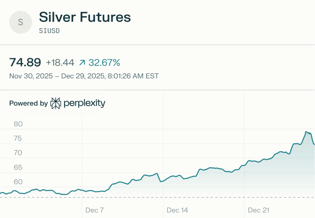 Silver prices have surged to around $74.67 per ounce amid record highs near $82, up over 170% yearly, prompting questions on whether now is the entry point for investors. Bullish fundamentals like fifth-year supply deficits and industrial demand from solar and EVs support potential gains to $88 in early January per some models, but overbought signals warn of pullbacks.